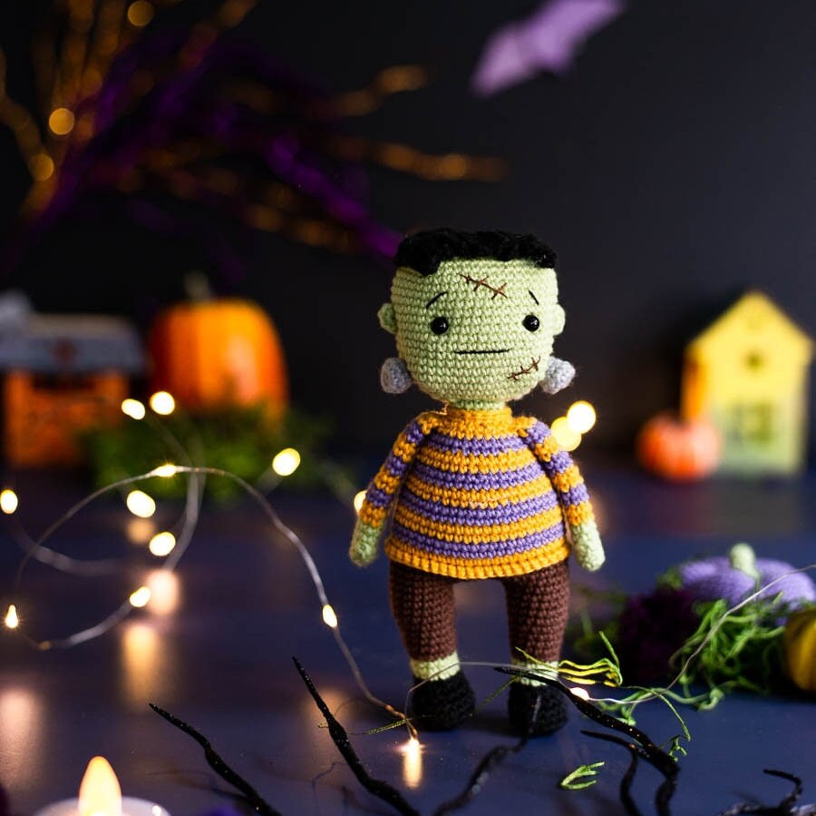 Amigurumi Crochet Halloween Toys - Pumpkin, Wich, Bat, Dracula and Frankenstein. Crochet Patterns in PDF