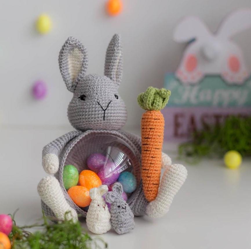 The bunny has a carrot-purse in which you can put small Easter sweets that will be a pleasant surprise for the child.