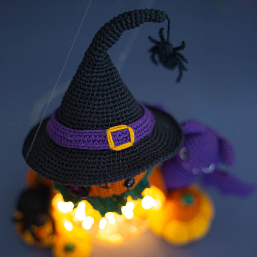 Halloween Crochet Pumpkin size is 18cm by 18cm (together with a hat and a bat's wingspan)