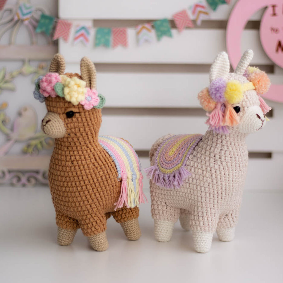 The Lama size described in the pattern is 30cm by 16cm (including ears) when using the original cotton yarn and hook.