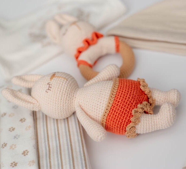 Amigurumi Crochet Bunnies - Crochet Toy and Rattle. Crochet Pattern in PDF