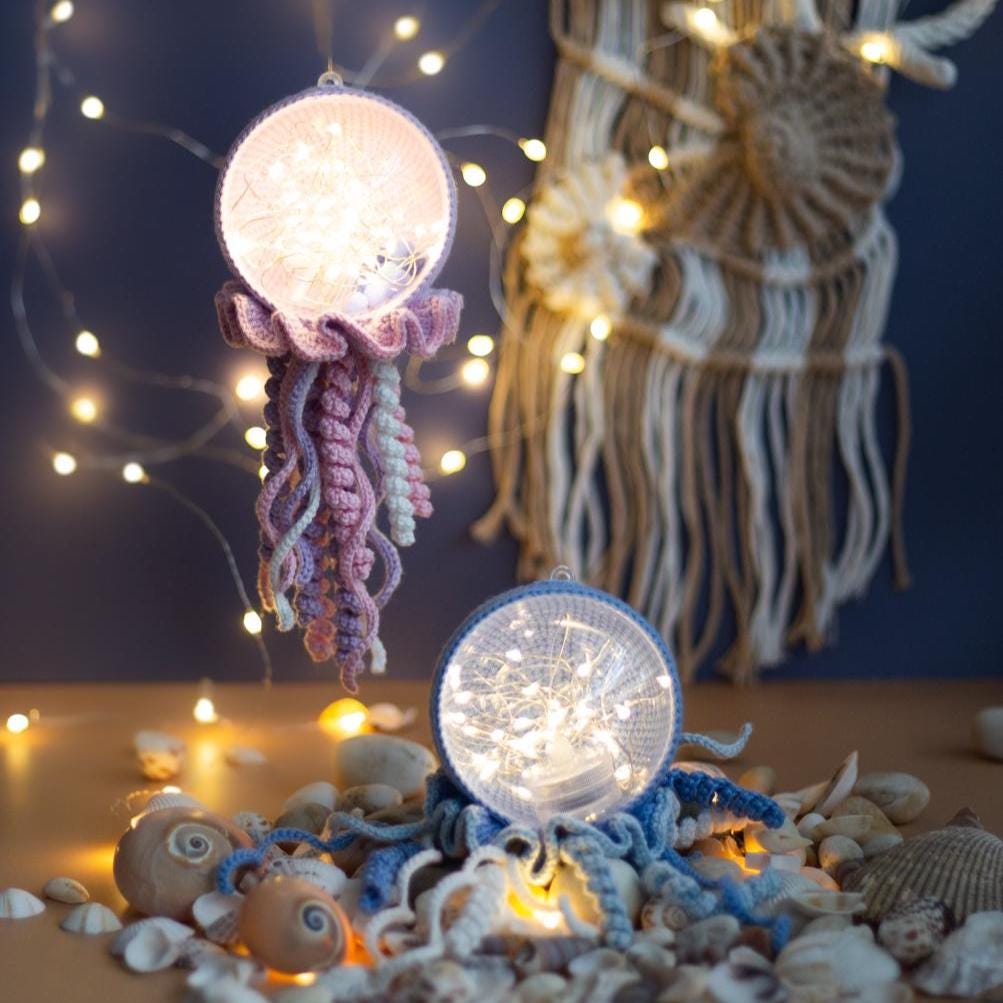 In the middle of each marine inhabitant, you can put LED lights that will give a special atmosphere in the evenings, or shells, pebbles or sequins.